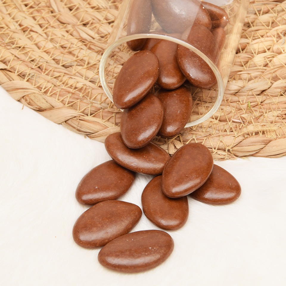 De klassieke suikerbonen, ook wel dragees genoemd, zijn gemaakt van pure chocolade en omhuld met suiker.