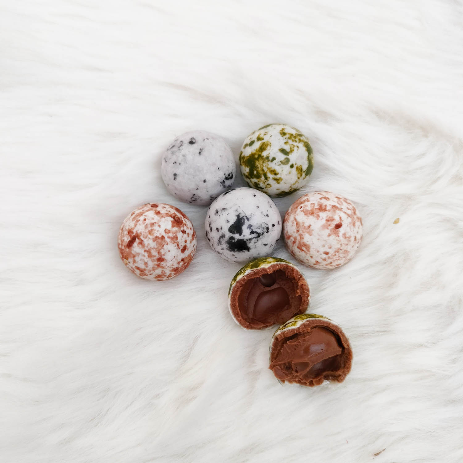 Ronde gesuikerde knikkers met zachte hazelnootcrème vulling (diameter +/- 2cm)